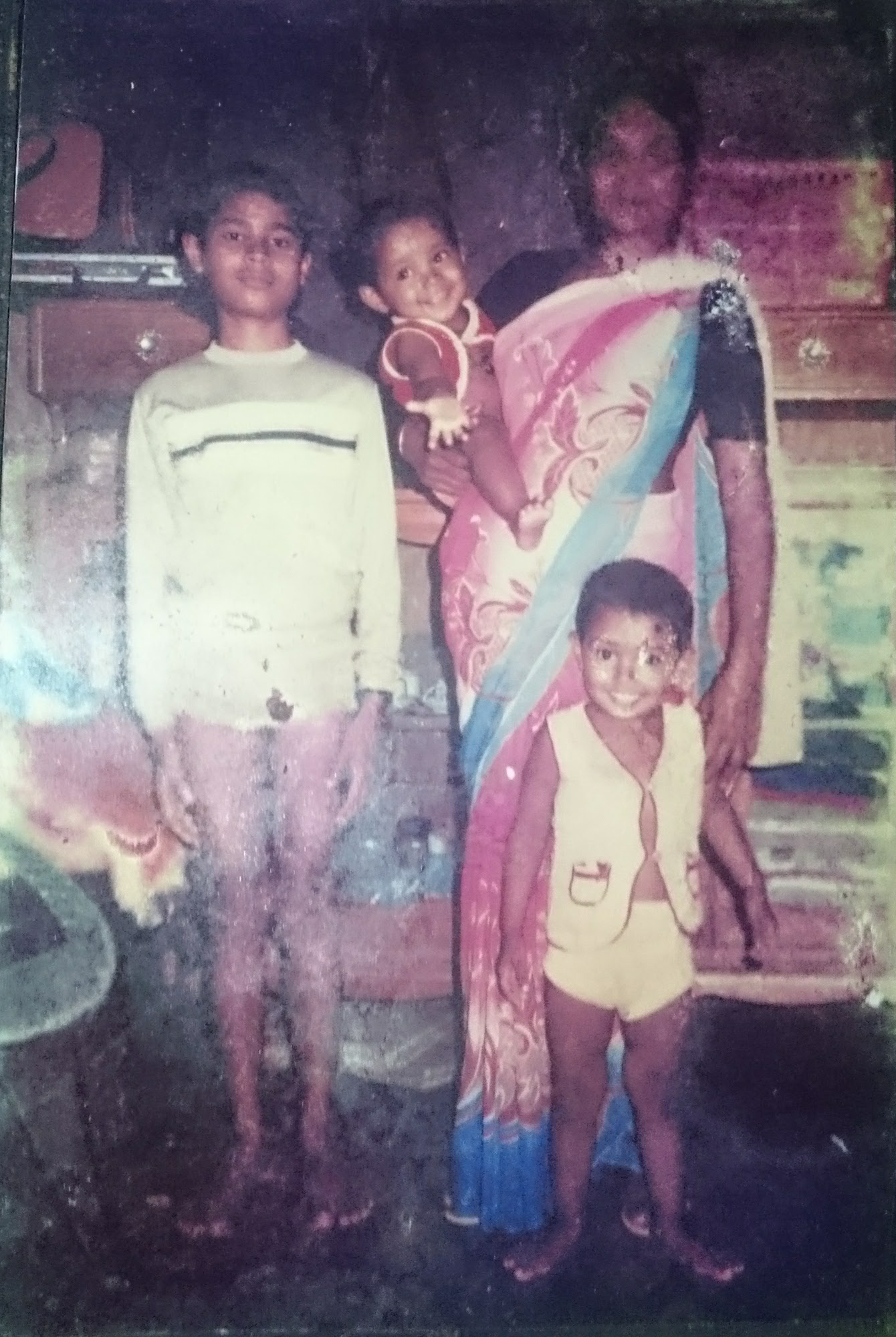 অনেকদিন আগে গ্রামের বাড়িতে একটা ছবি পেয়েছিলাম কাকার ঘরে। সম্ভবত এটাই হবে আমার প্রাচীন আমলের বেঁচে যাওয়া একমাত্র নষ্ট না হওয়া ছবি। আমরা তিন ভাই আর আম্মা আছি এই ছবিতে। আরেকটা বিষয় হইল এই ছবির মানুষগুলার মধ্যে কেউ বেঁচে নাই, এই অধম ছাড়া।