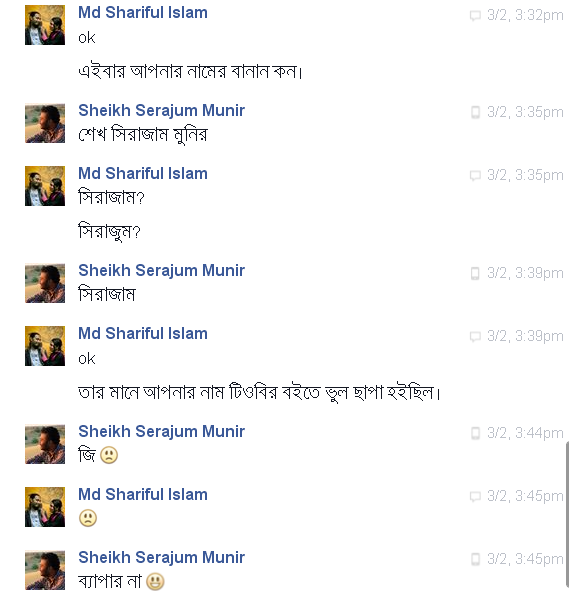 ‘তার মানে আপনার নামের বানান টিওবির বইতে ভুল ছাপা হইছিল?’