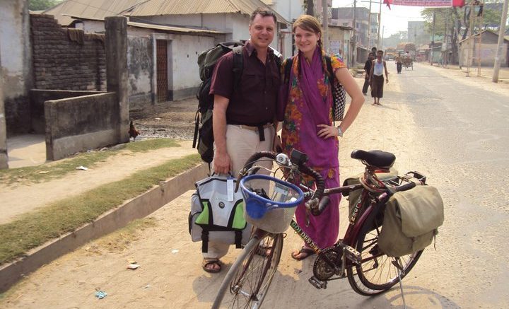 তাই কোন ছবি তুলতে পারলাম না হিলি পোর্টের গেটের। তবে সেখান থেকে বের হওয়ার পরই দুইজন বিদেশি অতিথির দেখা পেলাম। এবং আরো অবাক করার বিষয় তাঁরা চমৎকার বাংলা বলে। তাঁরা আমাকে দেখে কথা বললো এবং আমার কয়েকটি ছবিও তুললো। নিজে থেকেই জানতে চাইলেন আমি কি সাইকেল এক্সপেডিশনে বের হয়েছি কিনা। আমিও তাঁদের একটি ছবি তুললাম।