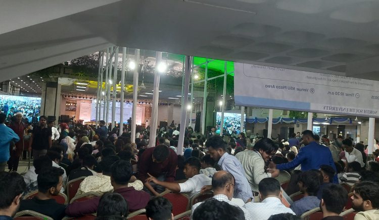 নর্থ সাউথে আজ ওরিয়েন্টেশন চলতেছে। গতকাল প্যান্ডেল টানাইছে, চেয়ার থেকে শুরু করে অনেক কর্মযজ্ঞ। অনেকটা বিয়ে বিয়ে ভাব। কেউ কেউ ভবিষ্যতে এখান থেকে নিজেদের জীবনসঙ্গী হিসেবেও নিজেদের নির্বাচন করবে, এটা নিশ্চিত।। আজ স্টুডেন্টদের সাথে প্রচুর লোকজন আসছে। অনেকে একদম পুরা ফ্যামিলি নিয়া আসছে। ছোট ছোট বাচ্চারাও আছে। কেউ কেউ কাউকেই নিয়ে আসে নাই। একা আসছে, কেউ আবার কয়েকজন বন্ধু-বান্ধুবী মিলে আসছে।